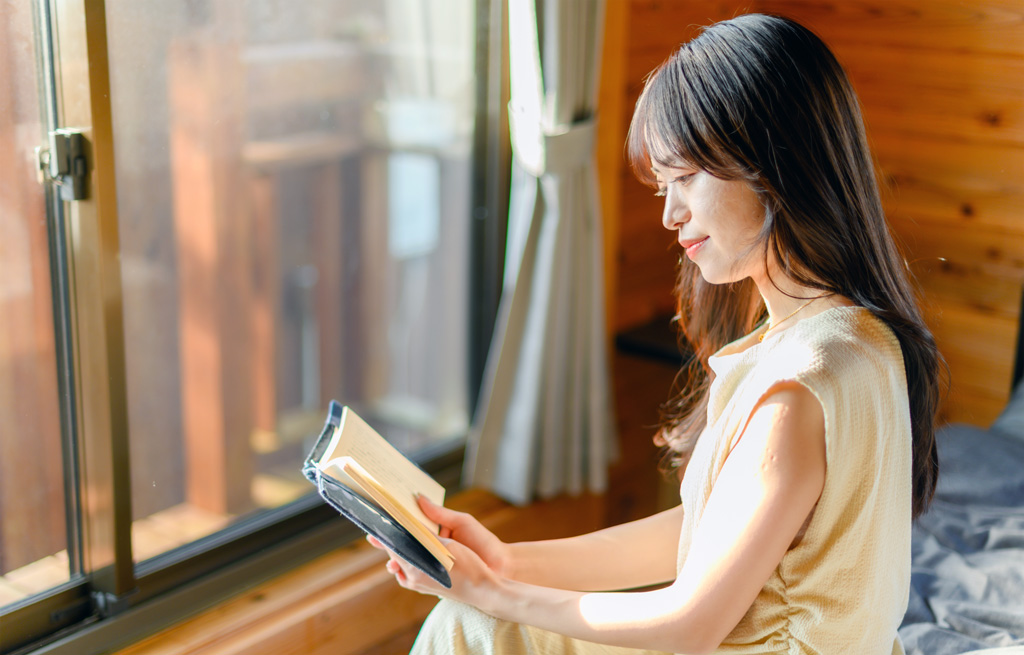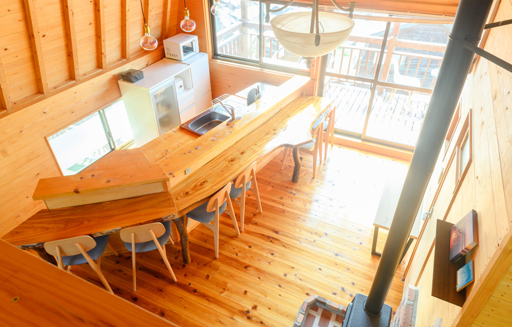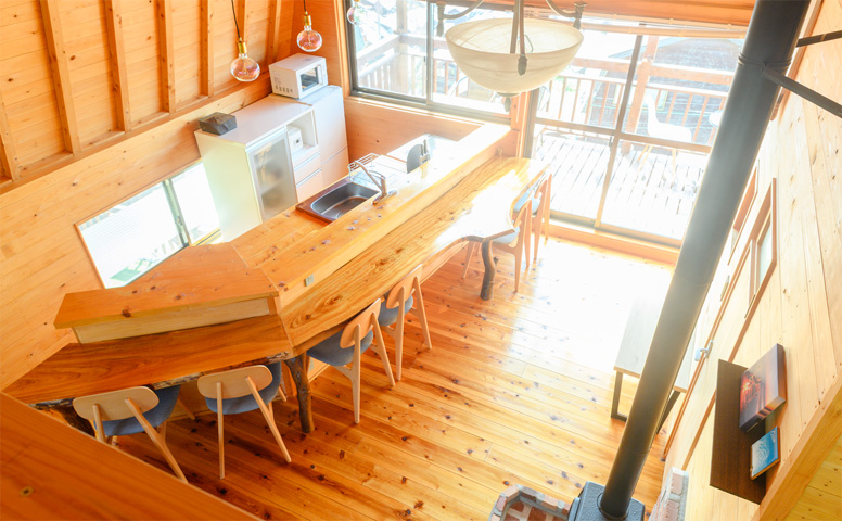 ログハウスならではの木から伝わってくる自然素材の温もり。