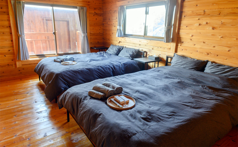 ROOM② 定員2名 11.65㎡ シングルサイズベッド2台、昇降式テーブル1台