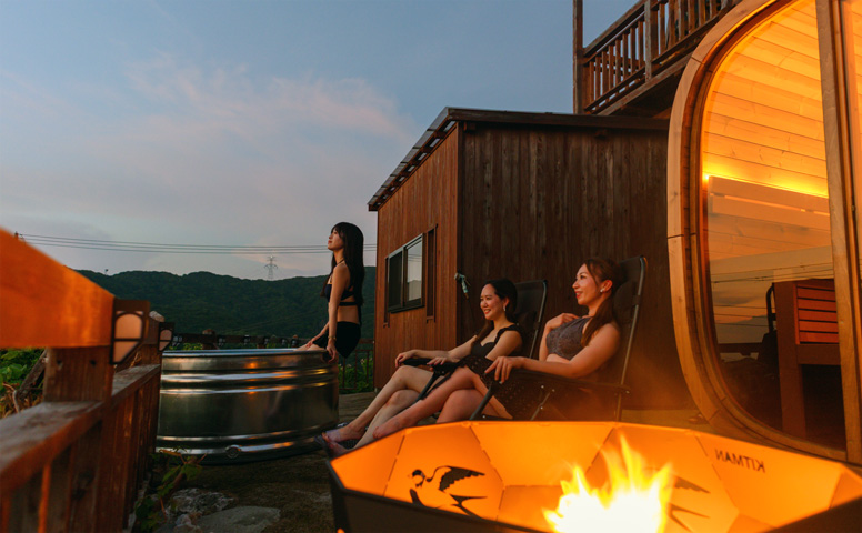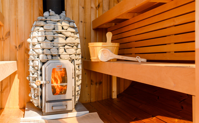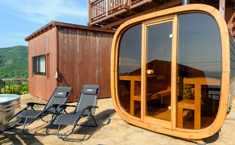 本格薪サウナで、薪の炎を楽しみながらリラックス。